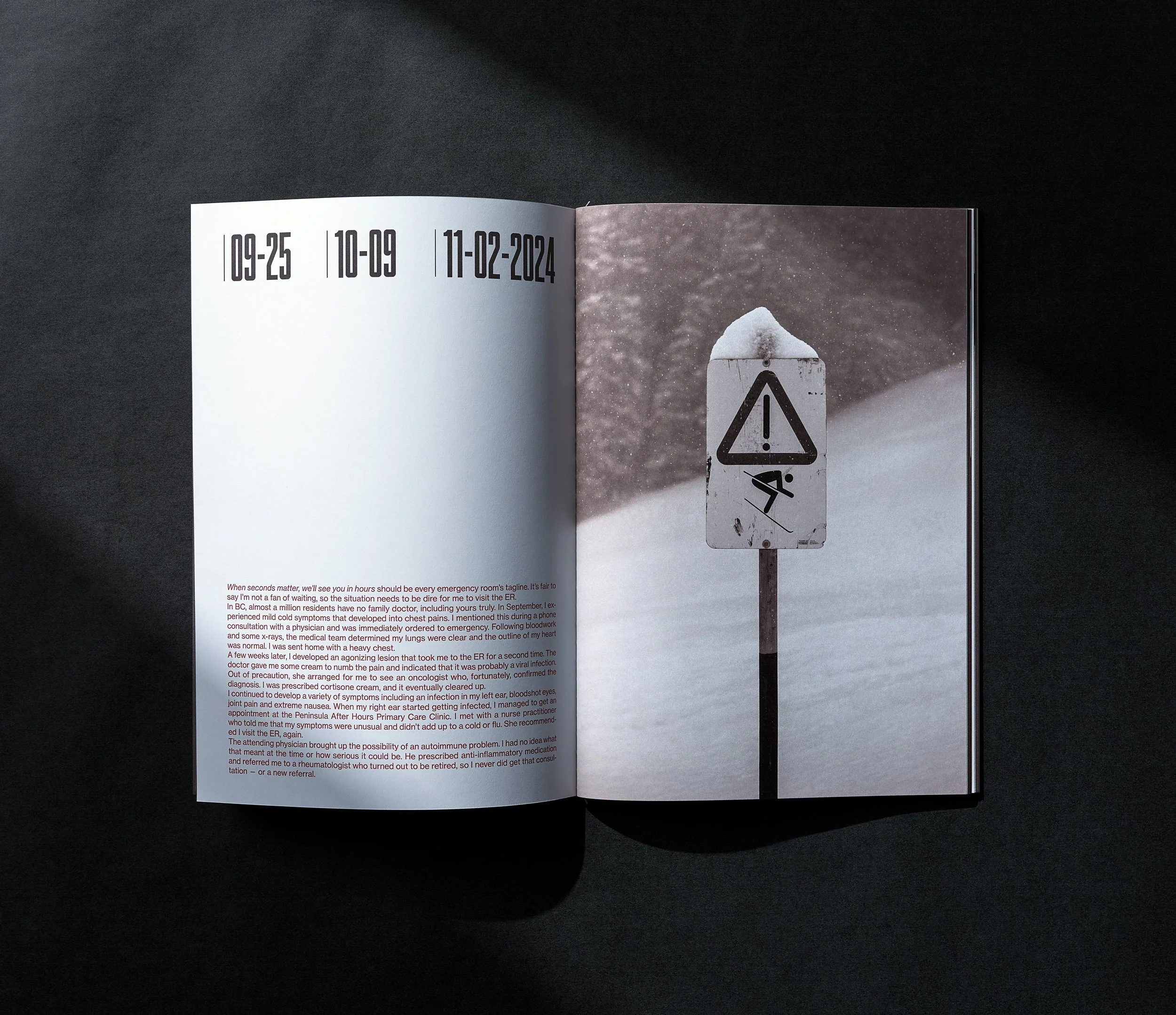 2024-25 was a challenging year on the health front. To help keep my family and friends informed, I created a journal. Journalling can be a good tool to gain self-awareness, manage stress, and foster personal growth. The creative process has always been my happy place so this exercise was also therapeutic. Images of signs, words and symbols helped complement my writing and sometimes added a little lightheartedness.